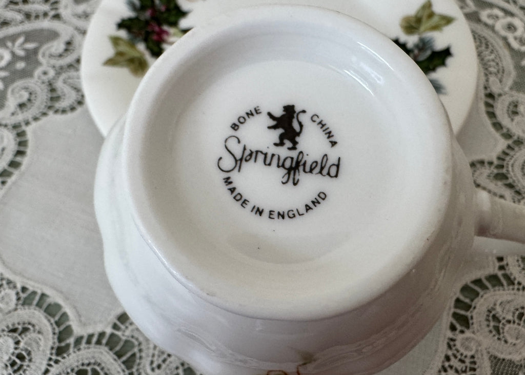 This vintage tea cup is marked, "Springfield, Bone China, Made in England. Excellent condition.
