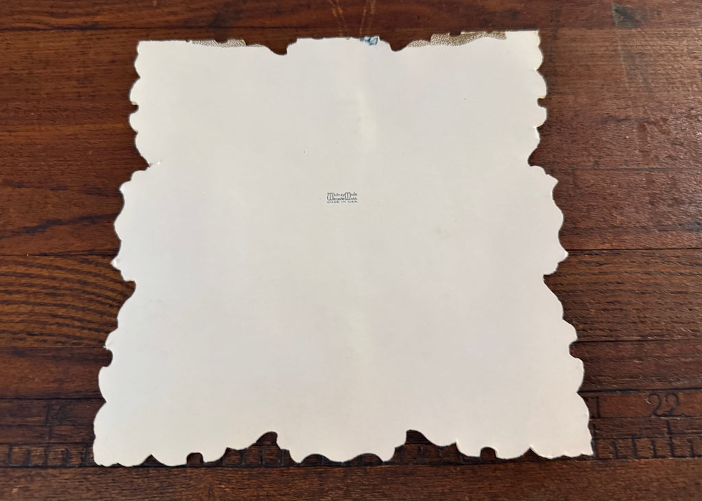 Measures 6 1/4 inches square. Marked "Whitney Made Worcester Mass" intertwined logo for the card company. Made in the U.S.A. Made of thicker paper, not stiff. Excellent condition.