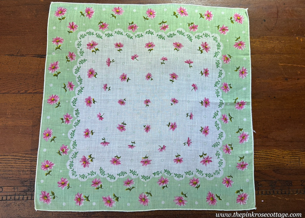 Vintage Pink Daisy Polka Dot Green Handkerchief