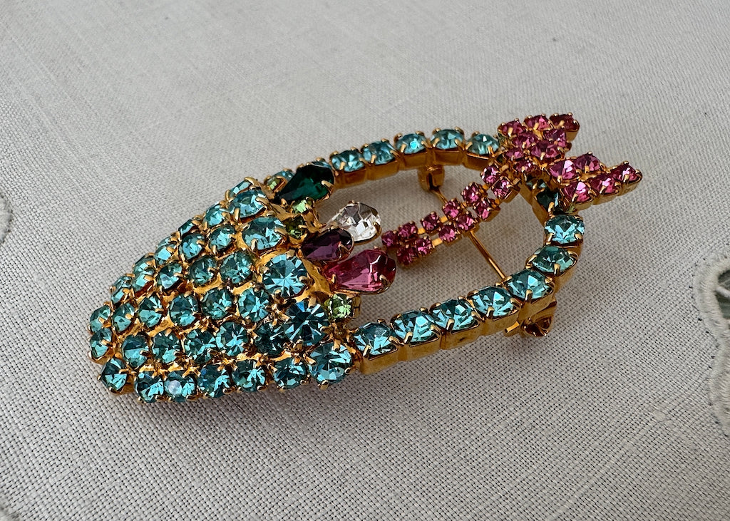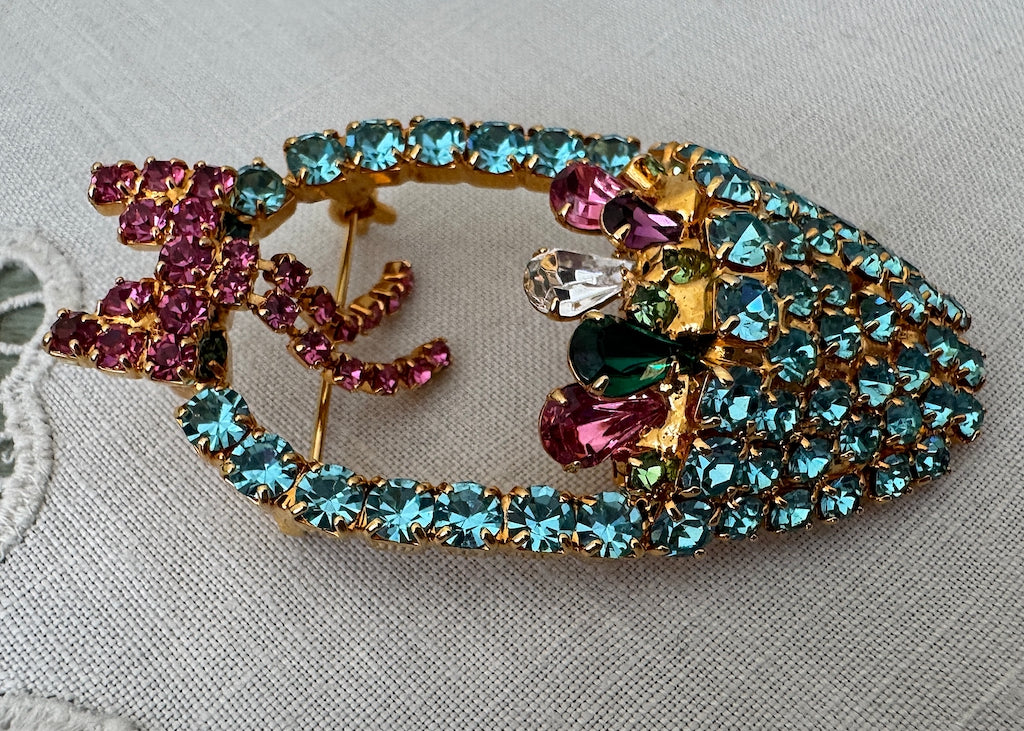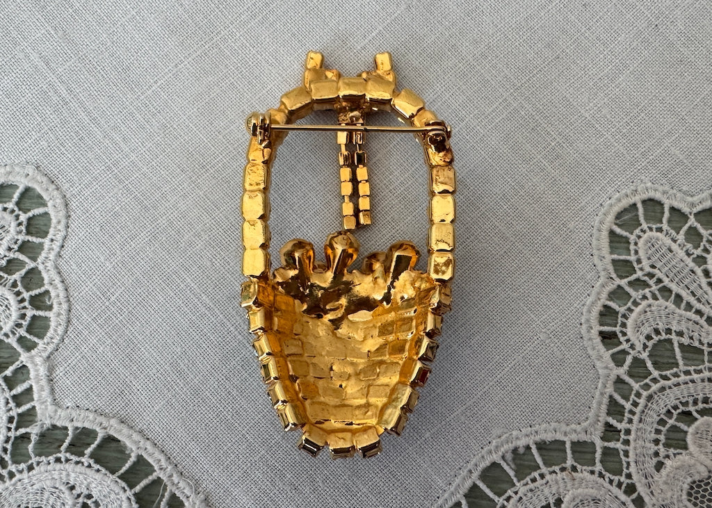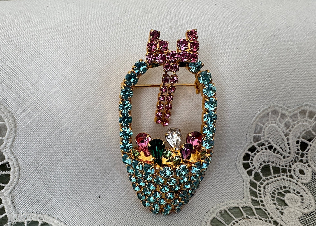 Vintage Rhinestone Easter Basket with Eggs Brooch Pin