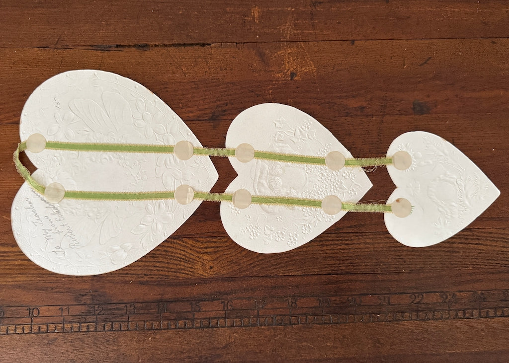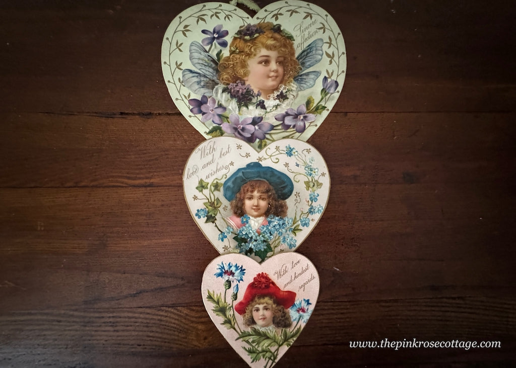 Antique Triple Heart Hanging Die-Cut Valentines Greeting Card