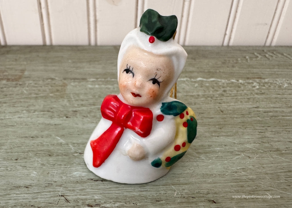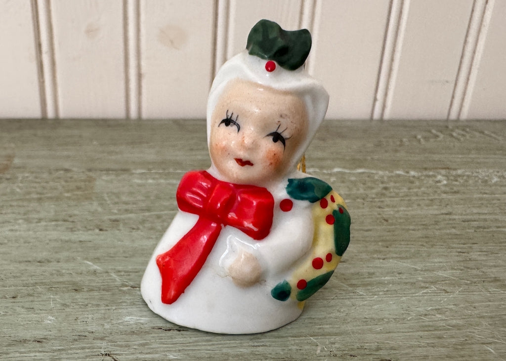 Vintage Little Girl Christmas Bell Ornament with Wreath
