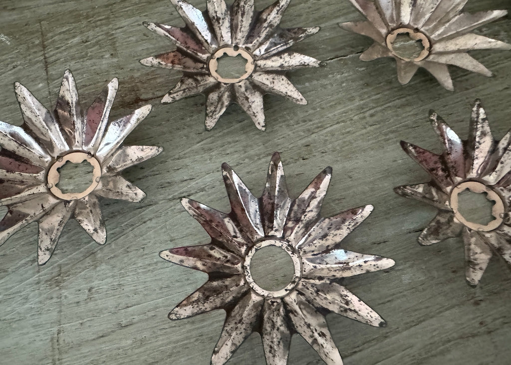 Vintage Tin Christmas Light Reflectors Star Flower Shaped